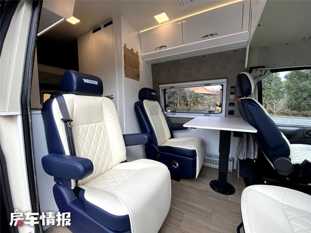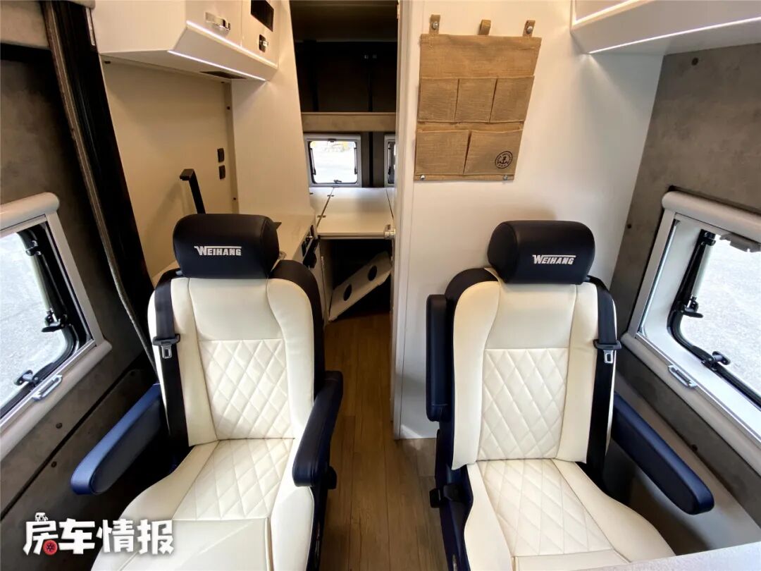 会客区的两张独立乘用车级座椅是我个人比较推荐的,近似于航空座椅的板型,能够在长途乘坐时提供更加舒适的体验,不论是老伴坐还是小孙子孙女坐,都会感到非常舒服。