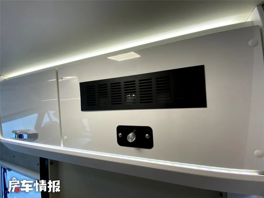 车身左侧还提供了黑水箱储藏厢和外接市电插口,对于一款B型房车而言,在完整的车体上重新开口,还是挺考验厂家技术水平的,这款车做的就挺不错。