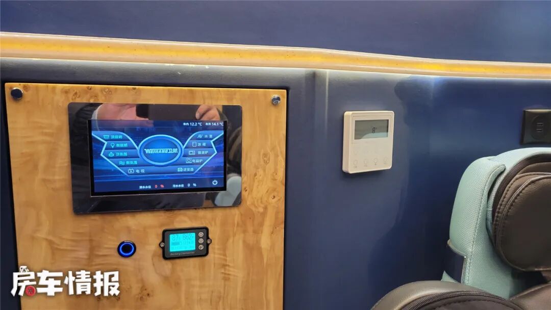 位于座椅内侧的墙壁上,还提供了一块触控液晶面板,用来控制车上的一些电器开关,相对于整车的豪华氛围,个人觉得这款液晶屏倒是可以做得更科幻、更有未来感一些。