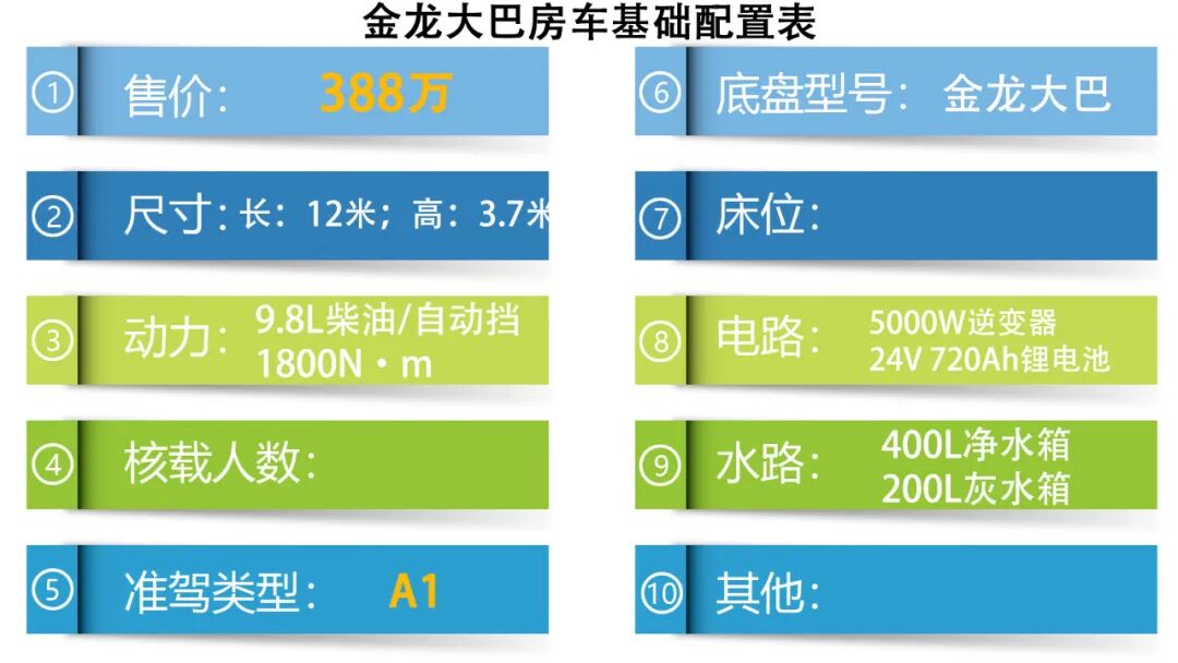 好了,这款基于金龙大巴打造的超豪华商旅车就介绍到这里,作为一款带有商务属性的大巴房车,个人觉得比较适合那些有超高端商务接待的公司,或者多人家庭长途旅行使用(前提是不住在车里),目前这款车的售价是388万,大家觉得如何呢?更多房车视频、房车资讯欢迎关注房车情报,咱们下期见~