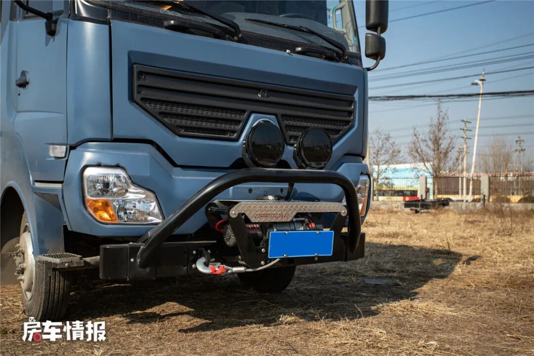 整辆车看起来高高大大,但实际尺寸长宽高依然保持在5990*2280*3030mm,满足C本蓝牌驾驶,动力上提供了一台来自潍柴的4.1T柴油发动机,最大马力170Ps,峰值扭矩600N·m,匹配一部6挡手动变速箱,对驾驶技术还是有一定要求的,不过对于那些越野老炮来说,我觉得手动挡反而更有魅力。