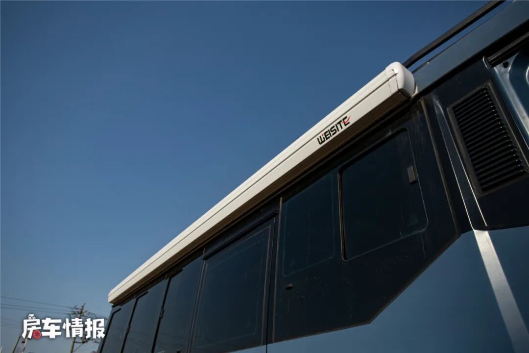 车身侧面提供了一台电动遮阳棚,控制开关位于车厢中门上方,只需要轻轻一按就可以把遮阳棚打开,比较方便。