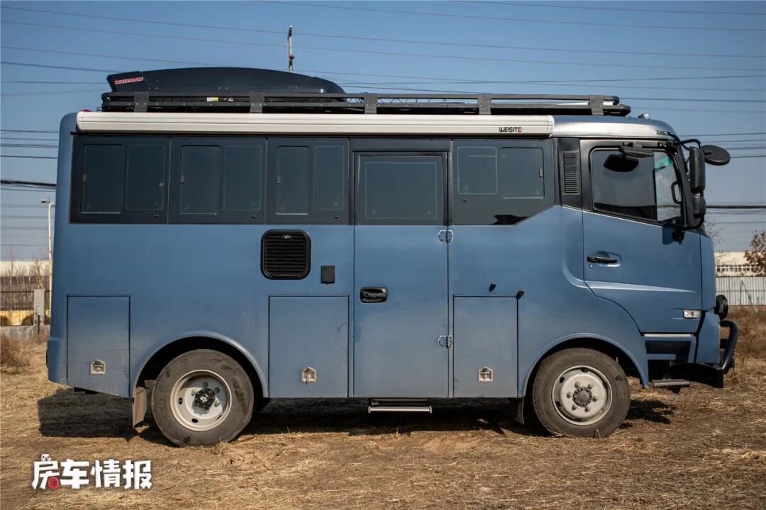 尽管底盘名义上是一辆“客车”,但是和主流的中巴车还是有不小区别的,整个车厢看起来就像是被架在车轮之上,姿态比较高大,由此带来的高出就是车内地板离地间隙也会变高,这款车地板离地间隙达到了1.17米,如此高的地板离地间隙,在车辆通过一些涉水路段时,也不用担心水会漫入车内。