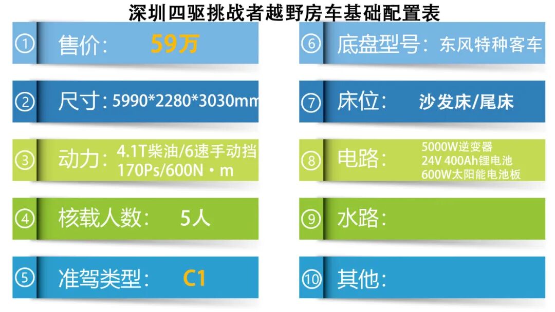 整体来看,这款基于东风特种四驱客车底盘打造的越野房车,在同类产品属于比较新颖的车型,对于普通房车玩家而言或许会觉得有些浮夸,但是对于那些喜欢重度穿越的发烧友来说,无疑会是一个不错的选择,关键是这款车的价格远比那些进口重卡房车要低的多,售价为59万元,基本上和一些国产依维柯的高配车型售价相当,这样一款能越野的特种客车房车,大家觉得怎么样呢?更多房车视频、房车资讯欢迎持续关注房车情报~
