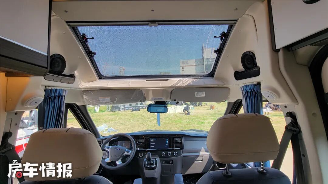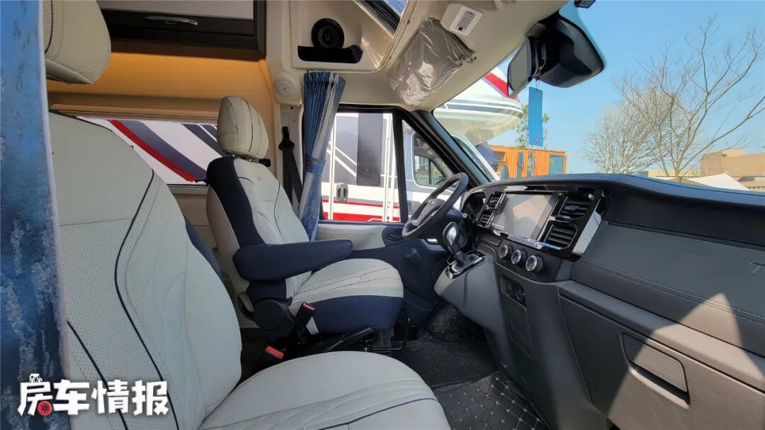坐进驾驶室,得益于顶部的超大尺寸天窗,整个驾驶室的通透感非常不错,全新设计的座椅,乘坐舒适性非常不错,有点商务车的感觉。