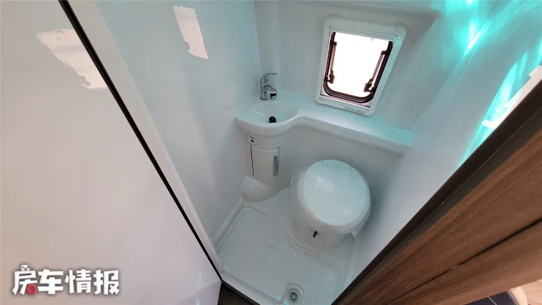 卫生间内部空间挺大,一体成型设计可以防潮防霉防漏水,顶部提供了max换气扇和晾衣杆,地板采用双地漏设计,日常使用时排水更痛快,另外这款车还提供了埃贝赫燃油暖风一体机和156L净水箱、66L灰水箱,以保证车内暖风和热水的供应。