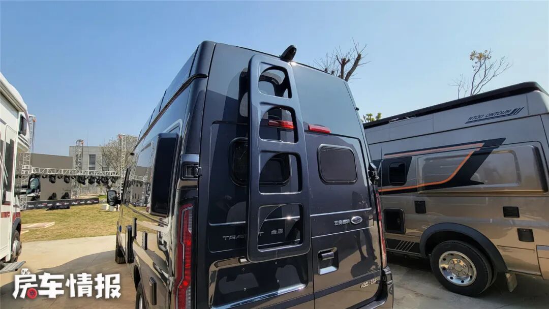 车尾部提供了车顶爬梯,整体风格和整车相得益彰,属于颜值与实用性并存的设计。