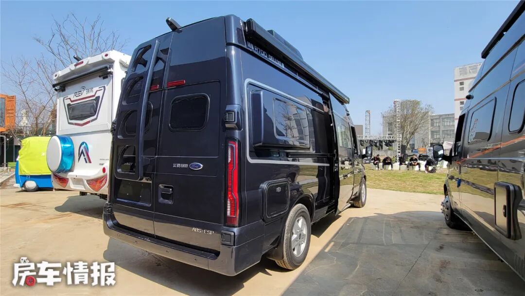 车身后方的盲窗部分依然采用了双侧外凸式设计,进一步拓展了车内横置双人床的空间,具体尺寸多大?到了内饰部分再为大家揭晓。