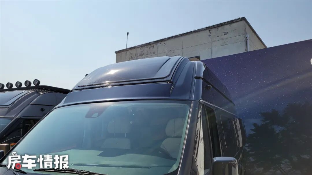 在外观细节上,这款新车也加入了一些独有的设计,如驾驶室顶部的大尺寸天窗,整个车窗框架进行了二次开模,为了保证车顶部分的强度还重新进行了加固,用厂家的话说“强度比原厂还高”。作为R系列的标志之一的天窗,在之前的R500和R600上都是以不可开启的天幕形式出现,到了R700上,变成了可开启的设计,这可算是同类型车型独一份了。