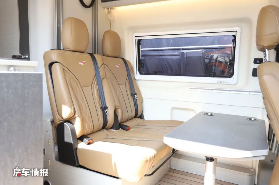 作为一款核载四人的车型,车内的布局和主流的B型房车相差不多,同样是采用双人连排座椅以及后横床的布局设计。