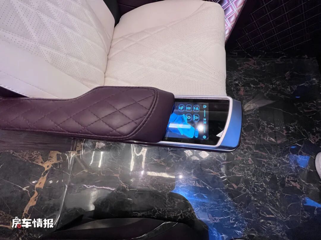作为一款核载4个人的车型,车厢内部配置了两张航空座椅,不仅带有腿托,而且扶手上还是采用了触摸屏的设计,更能直观的操控座椅的加热、通风和按摩功能。