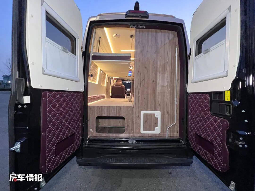 水电路上,这款车提供了3000W的逆变器、800Ah锂电池、130L净水箱、60L的污水箱,后期如果有需要还可以在顶部加装300W的太阳能电池板,另外全车也提供了一台顶置空调以及燃油热水恒温暖风系统,以保证日常正常的使用车辆。