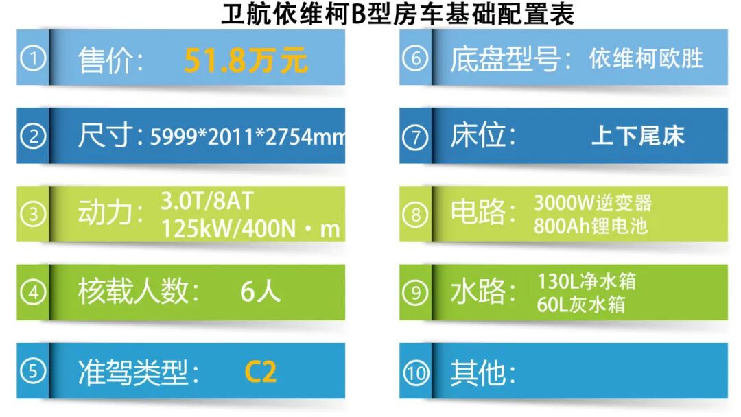 这款市面上较为少见,且配色比较新颖的,搭载了依维柯欧胜底盘所打造的卫航B型房车,现在的官方指导价为51.8万元,不知道您觉得如何呢?欢迎在下方的评论区和我们互动,那么下期再见~