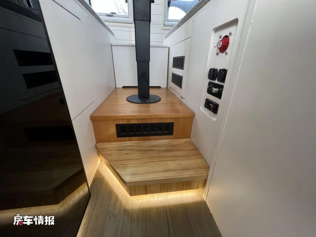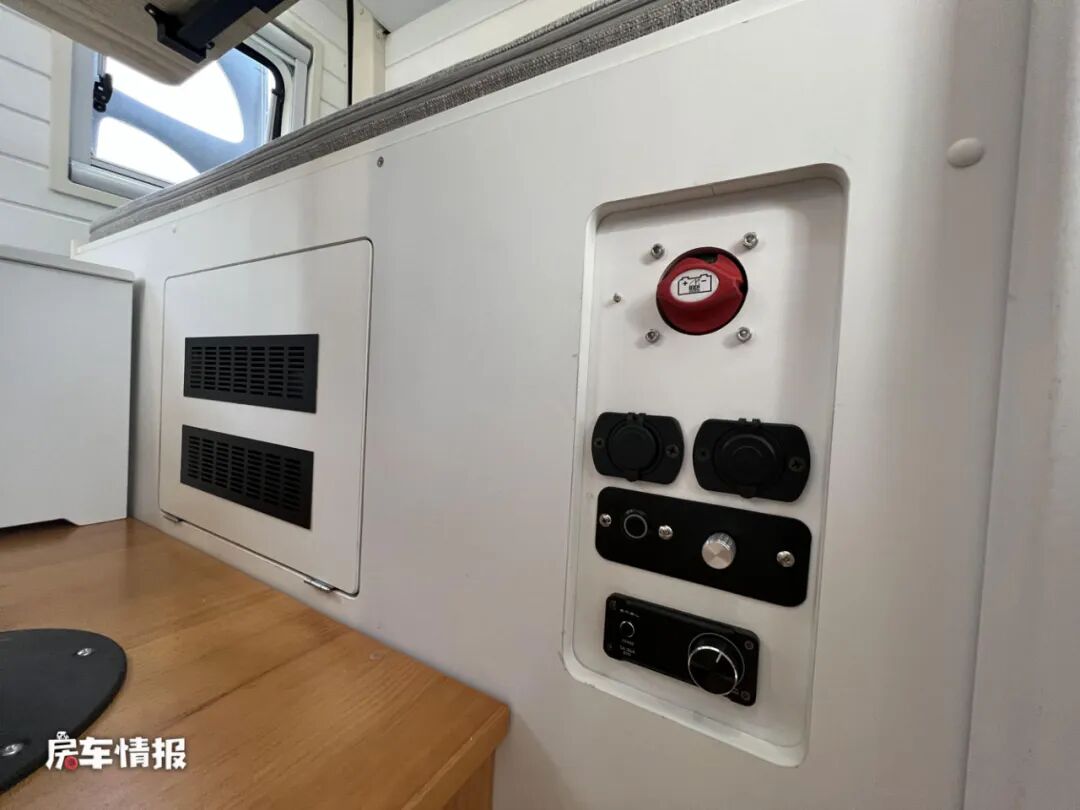 电路上,这款车是搭载了一台3000W的逆变器,提供12V 1000Ah锂电池,相当于12度电,水路上则拥有150L净水箱、70L灰水箱和17L黑水箱,另外全车还配有进口柴油锅炉以及过水热系统,以供日常可以正常使用车辆。