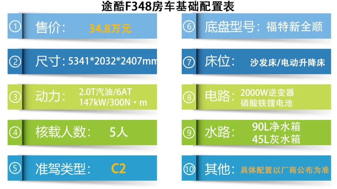 这款搭载福特新全顺底盘所打造的一款外观大小和MPV差不太多的途酷房车,因为配置了豪华的座椅,日常在车内商务接待或者洽谈也不会觉得掉面子,而且还比MPV的功能更加的丰富,现在这款车的报价为34.8万元(具体配置以厂商公布为准),不知道您觉得这样一款可以日常代步替代MPV的房车如何呢?