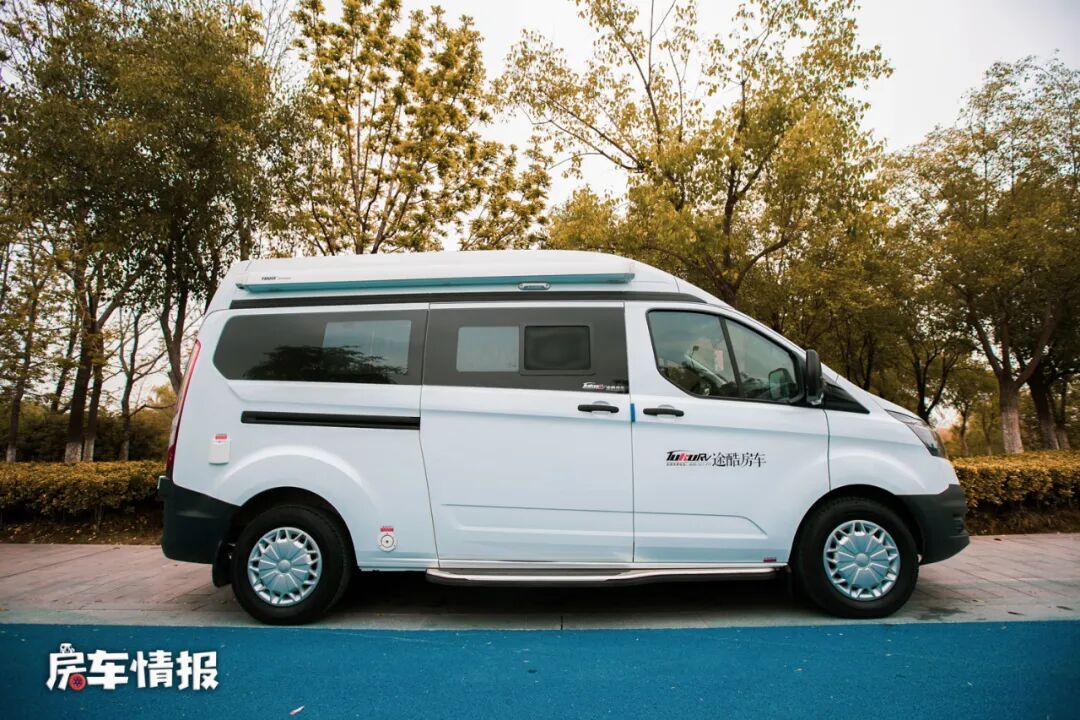 看到这位网友老板的要求,我还是将目光锁定在了福特新全顺底盘的车型上,毕竟无论是外观尺寸还是造型上都更贴近MPV,既然需要内部能够进行简单的办公,那豪华的商务座椅一定必不可少,所以我就想推荐这款,来自于途酷房车的F348。