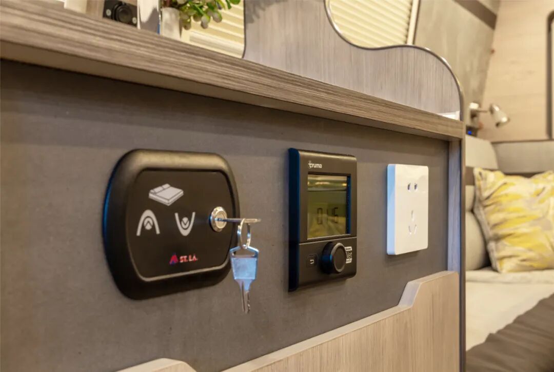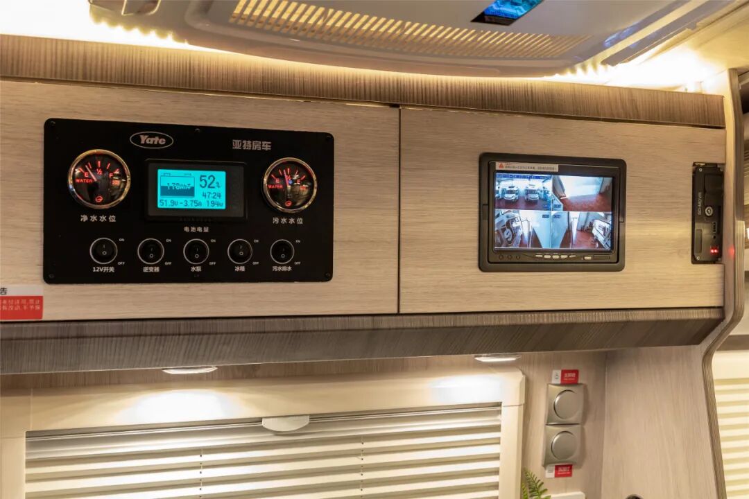 位于乘客门上方的集成控制面板,显示水量及电量等功能,可控制车内照明灯及电器设备开关等。