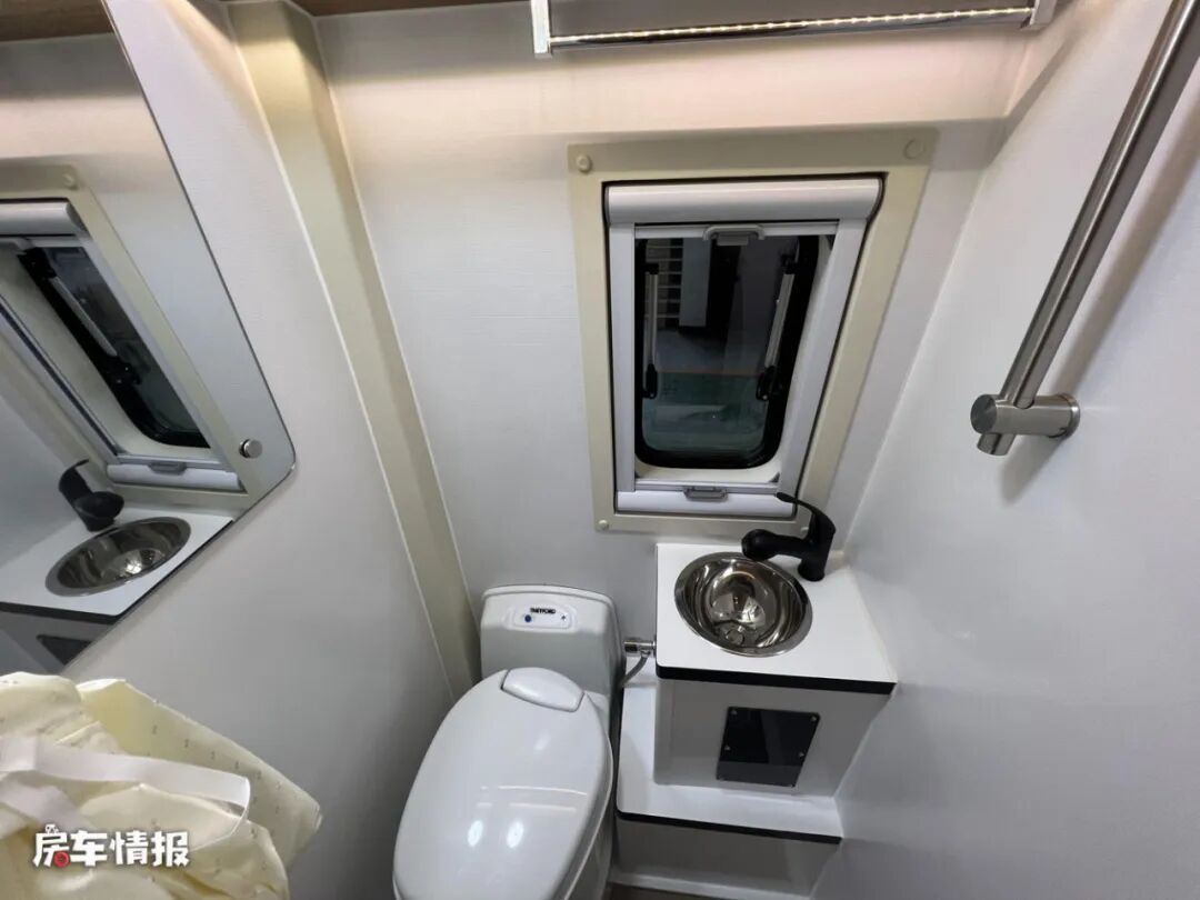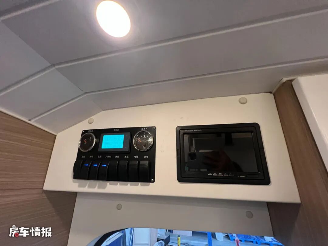 水电路上,这款车是提供了3000W的逆变器、800Ah锂电池、150L净水箱、50L灰水箱,同时车内还带有燃油热水恒温暖微风系统,即便在寒冷的冬天,也能够正常的洗澡使用。