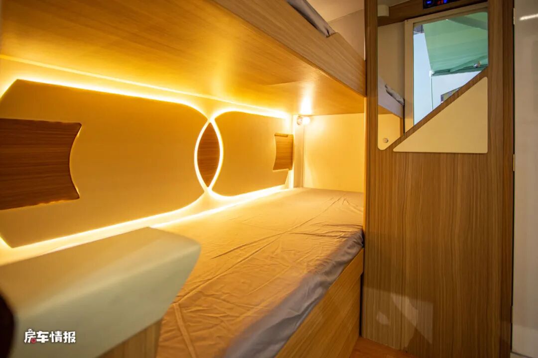 最后来看下睡卧区,DT520依然占据优势,前后两个独立休息区,前方为横置双人床,可以满足两个成人休息,后方上下双层单人床,依然可以睡下两名成人;L11则是提供了一组L型的拼着床。横置+纵置的床铺布局,倒也可以睡下两人。