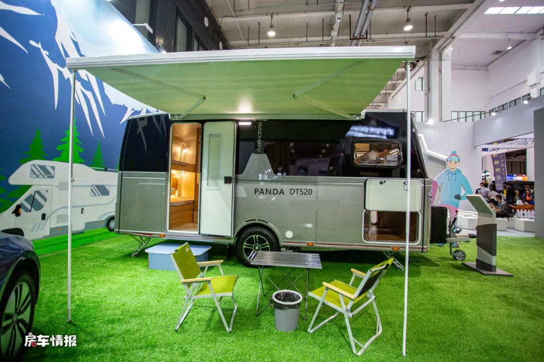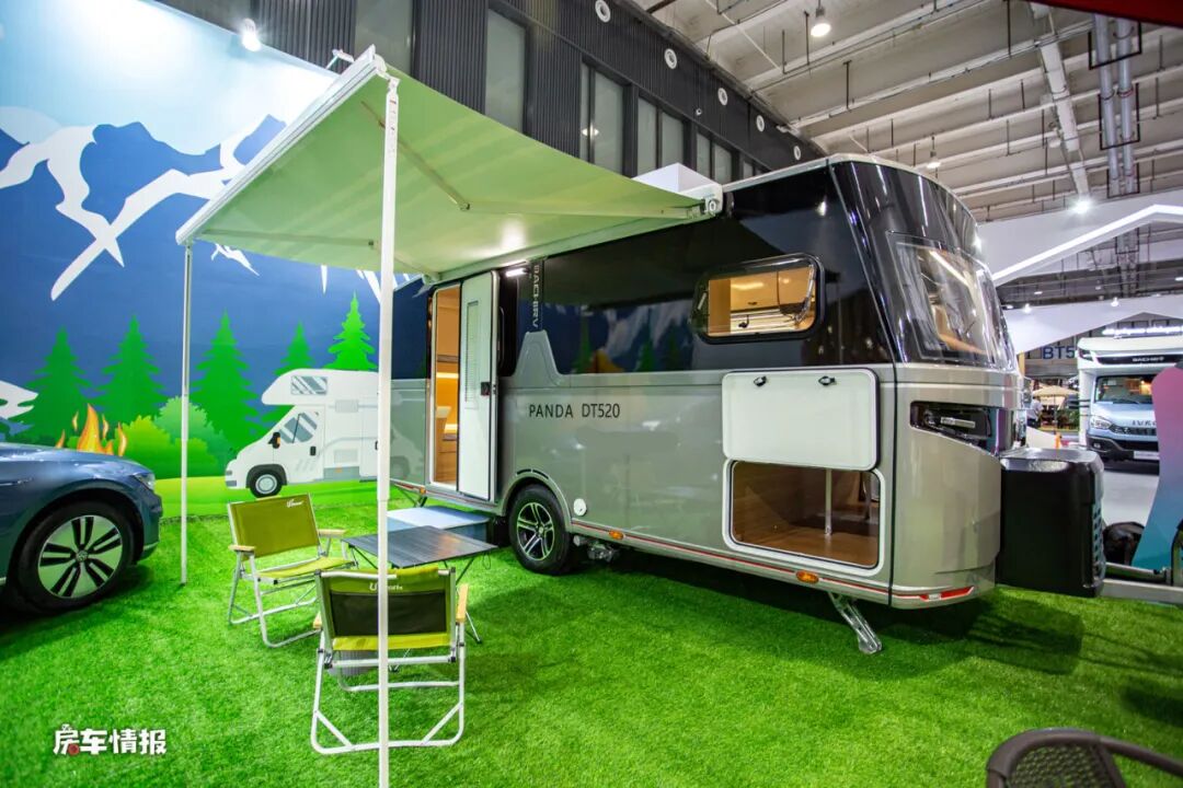 首先是外观方面,作为一款标准的拖挂式房车,大驰DT520的外观比较方正,不过这款车车身采用冲压钣金件,再加上彩色涂装以及复古造型,让整车的颜值比较在线,拉出去旅行还是挺有样的。
