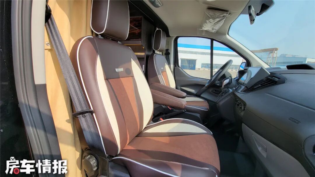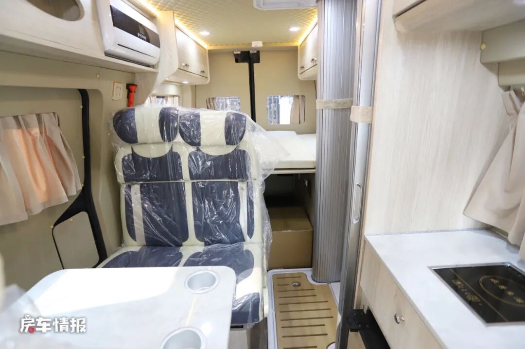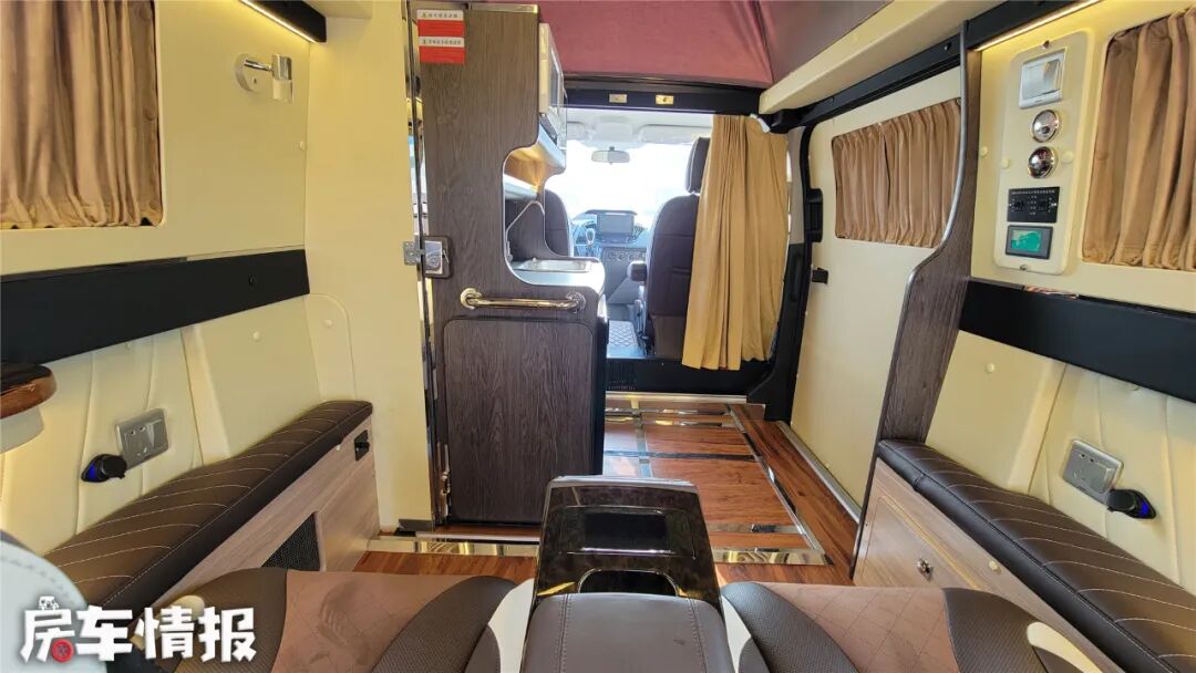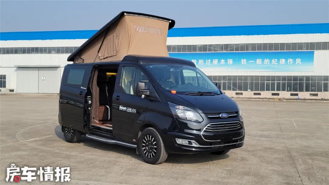 接下来这款车就要更高端一些了,同样是基于福特新全顺底盘打造而成,但这款车采用了一个弹出式车顶的设计,这就在很大程度上降低了整车高度,这款车的长宽高为5341*2042*2134mm,2米出头的高度让这款车可以轻松进出大部分地库,作为日常代步使用的话会更灵活。