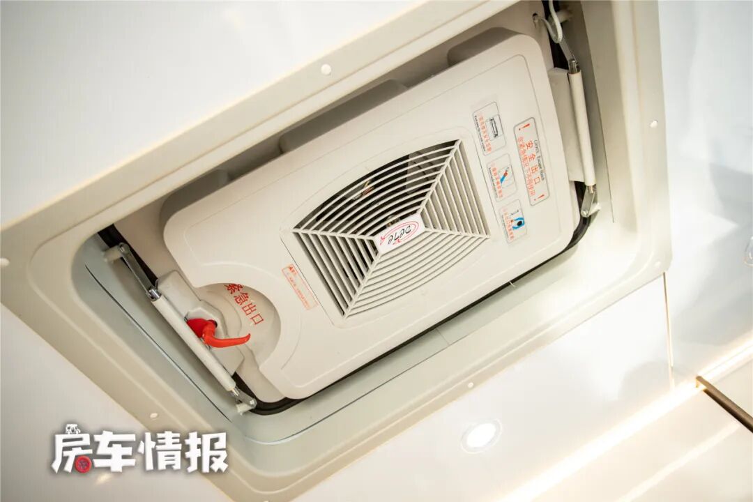 驾驶室顶部中间还装有一个12V的行车空调,这样就可以为驾驶室和生活区都调节温度了。