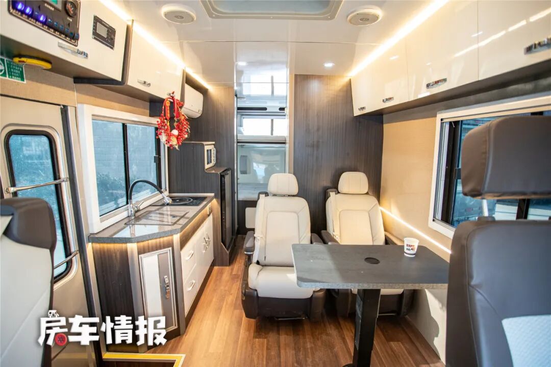 今天的这款实拍车是4座布局的,还有一款可以选择6座布局,同时驾驶室上方还可以选装一张升降床,提供更多的睡眠区域,大家可以根据出行需求进行选择。