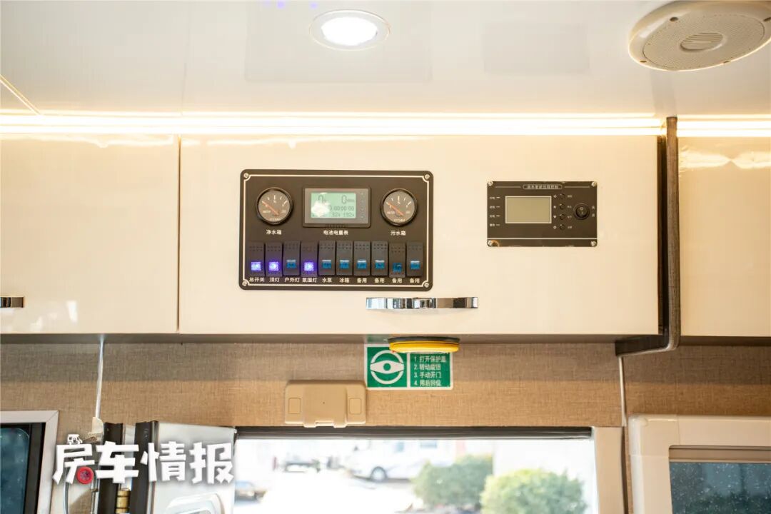 车辆中间部分有一个在房车内不常见,但是客车中常见的设备,它就是手动逃生舱,如果遇到了危险,车门打不开,可以通过这里出去。