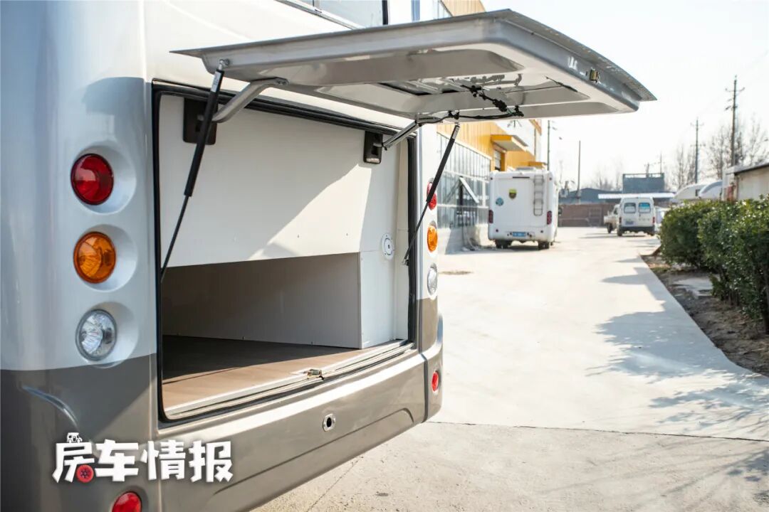 中巴车车底部和尾部的储物仓依旧保留了下来,还多设置了几个,装一些不太大的行李或者是折叠自行车也是可以的。