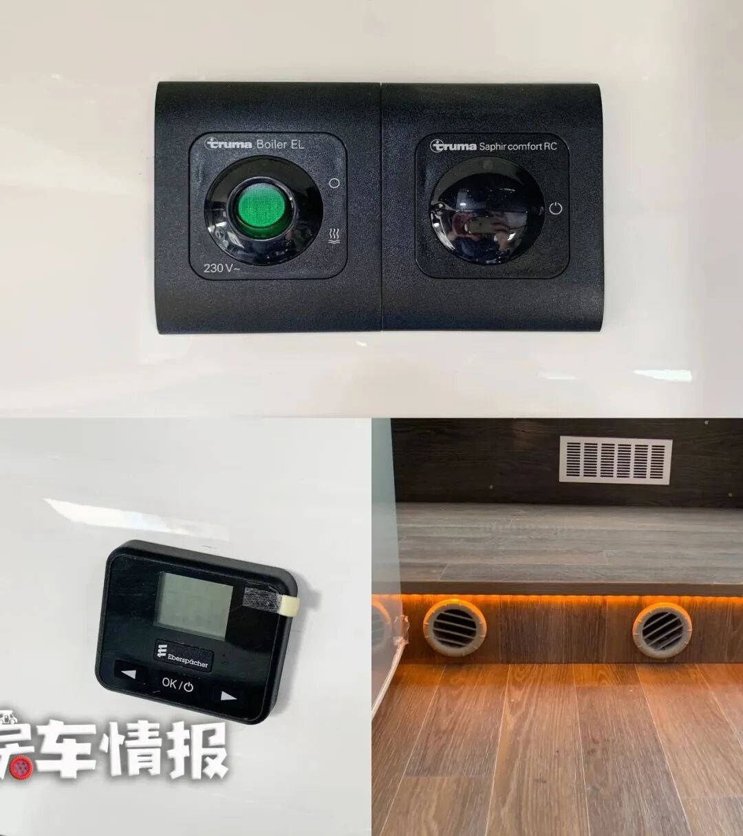 车内还安装了爱贝赫的燃油暖风和特鲁马的底置空调,让大家在车内可以随时享受到温暖舒适的环境,在户外累了也可以享受到家一样的舒适。