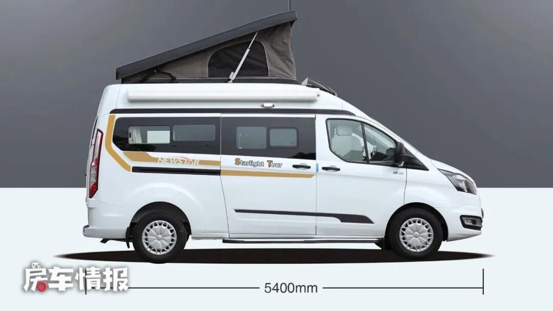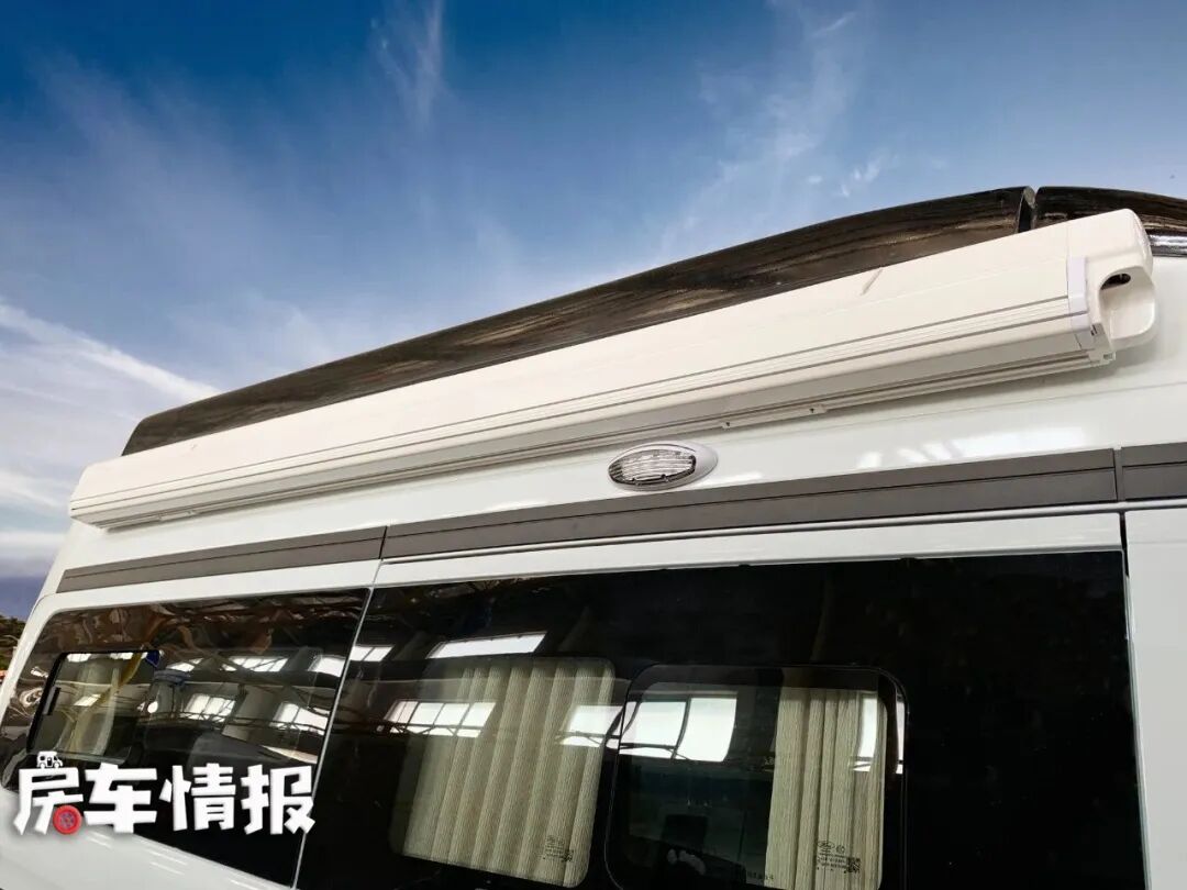 车辆外以白色为主,搭配黄色和黑色拉花以及品牌logo,让车身更加动感,也更有辨识度。为了满足更多人的睡眠空间,本车安装了升顶的设备,在这个不大的空间内尽可能的增加使用空间。车外还装有电动遮阳棚、水电接口、外置淋浴花洒,让大家在车外也能有更好的体验,