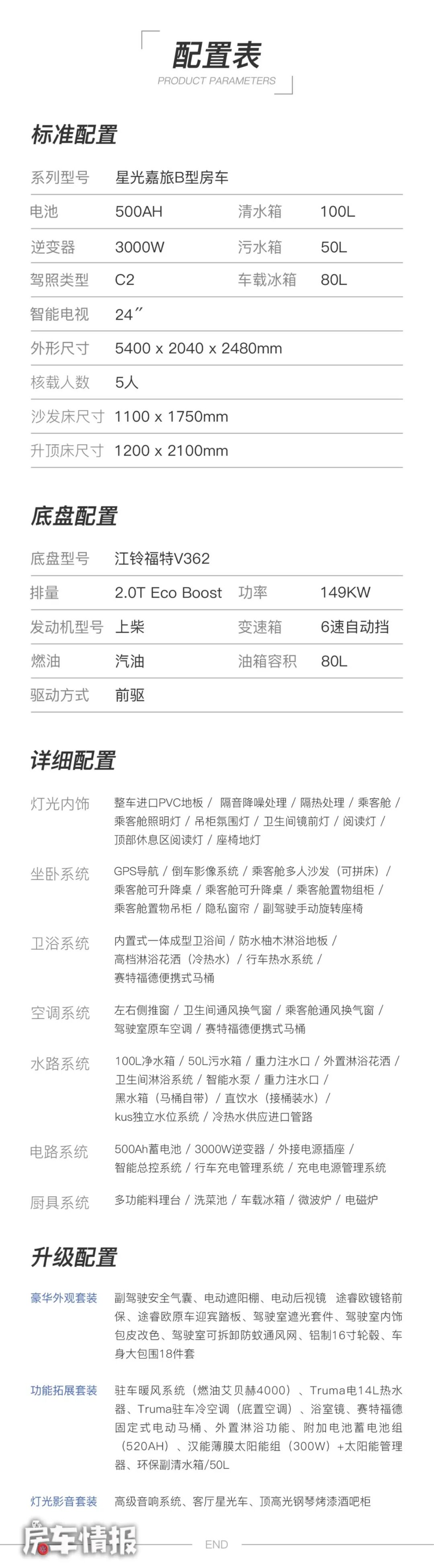 总的来说在,这款星光嘉旅B型房车,在不大的空间内,有了新奇的设计、更齐全的生活设施,让大家在户外不必为生活琐事发愁,而且还有更多的选装配置。这款车售价37.8万元人民币,您觉得怎么样呢?欢迎大家持续关注房车情报,了解更多房车信息~