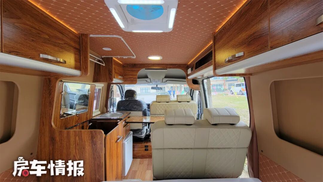 进入生活区,可以看到大面积的木色装饰,尽显中式风格。车内由前到后依次为会客区、厨房和车尾横床,在车内还隐藏有一个淋浴室,让我们一起来看看吧。