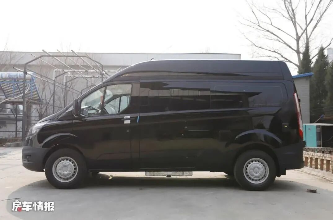 这款新飞福特B型房车属于中规中矩的一款房车,基于福特新全顺底盘所打造,全车为黑色涂装,看上去更加稳重。