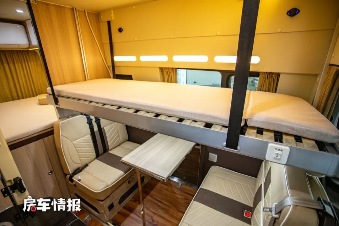 车厢内部采用了浅色系的装饰风格,在灯光的映衬下十分温馨,空间感也还不错。此外全车还采用了隔音止震保温处理,提升在车内休息的质量。