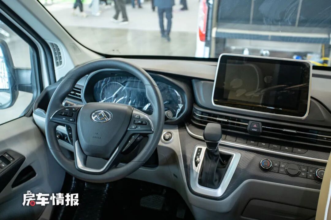驾驶室内部也延续了原车的设计风格,配备了多功能方向盘和中控彩色显示大屏,主副驾驶座椅采用皮质软包工艺,并带有乘车扶手,缓解了行驶途中的疲惫,另外副驾驶座椅还带有旋转功能。