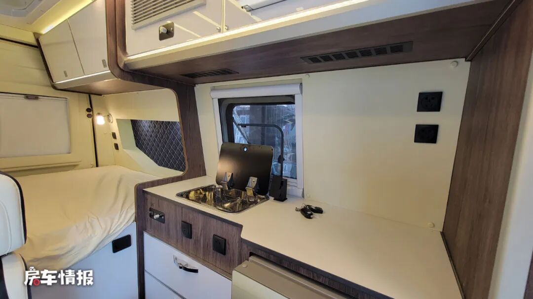 因为采用了高顶底盘,所以车内的空间感还是很不错的,浅色的家具也带来了比较通透的氛围感。