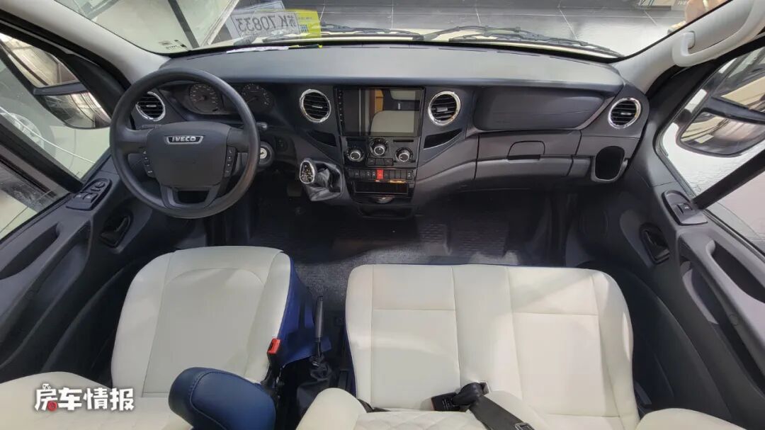 动力上,这款车是搭载了一台3.0T的柴油发动机,匹配采埃孚8AT变速箱,最大功率为125kW,最大扭矩为400N·m,符合当下的国六排放标准。不过和主流的依维柯底盘房车设计不太一样,这款车的驾驶室采用了1+2的形式,日常能够乘坐3个人。