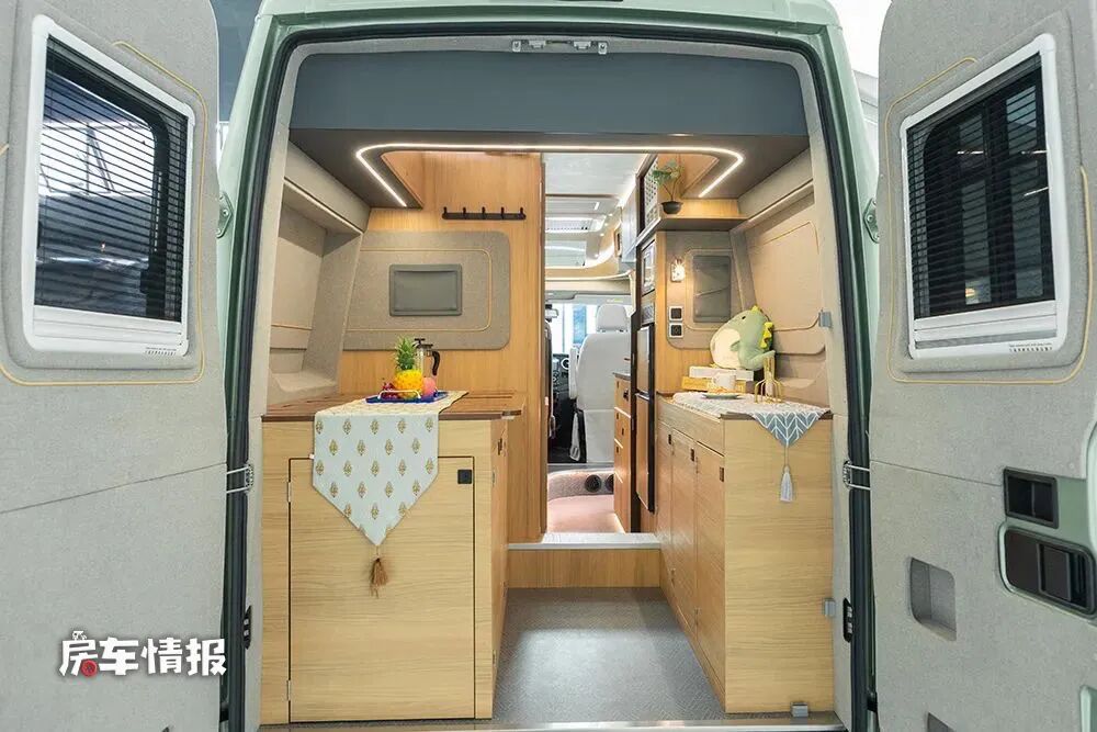 整辆车的外观是采用了非常低调内敛的西西弗绿,给人一种轻盈、舒适、平静的感觉,当房车穿梭在环形山路之间,这抹绿色也会成为靓丽的一道风景。