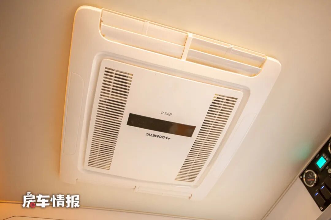 另外在会客区的顶部还装有一台220V的顶置空调,随时可以调节车内温度。