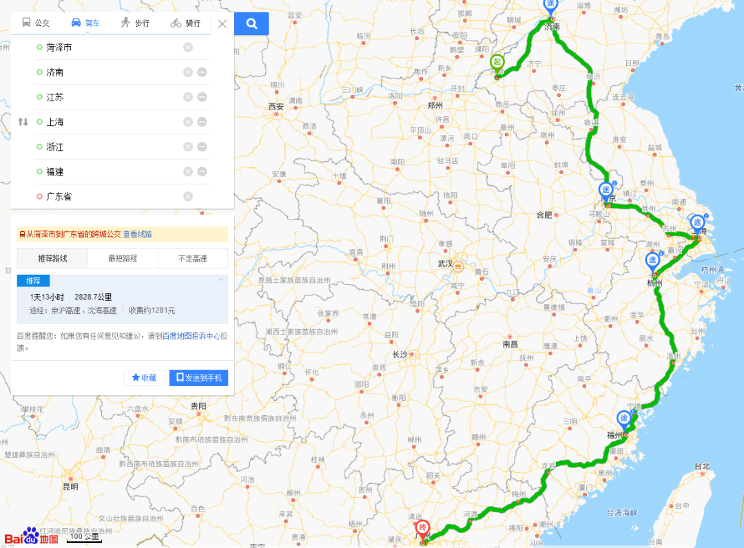 菏泽→济南→ 江苏→上海→浙江→福建→广东