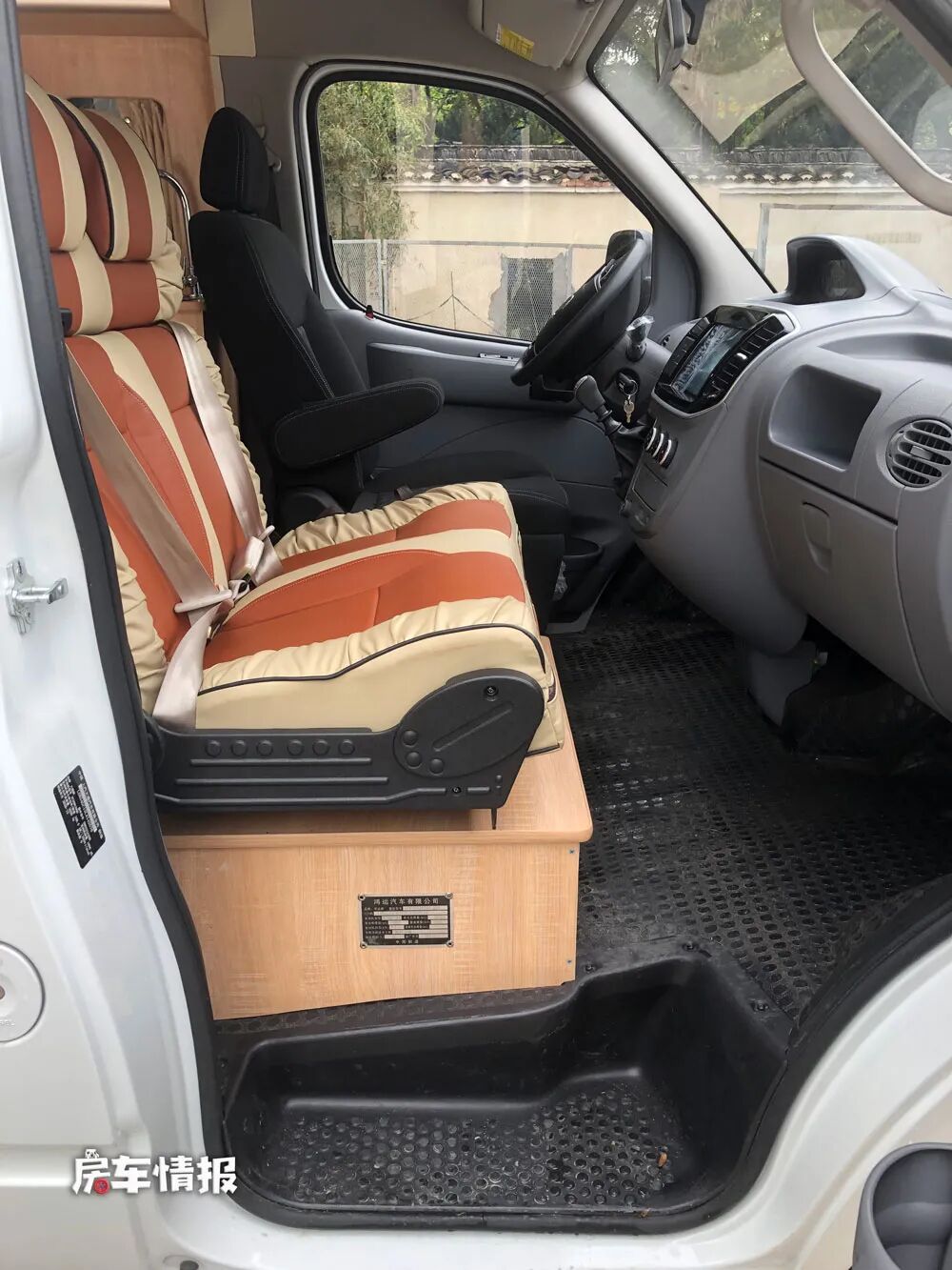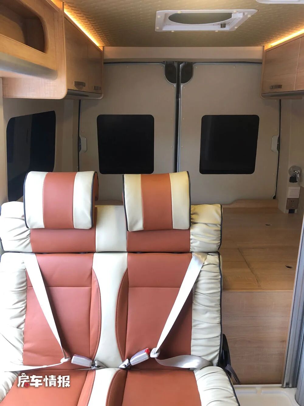 在两个副驾驶座椅后方,提供了一排同样质地的沙发座椅,并带有两条安全带,平时行车也可以坐人。