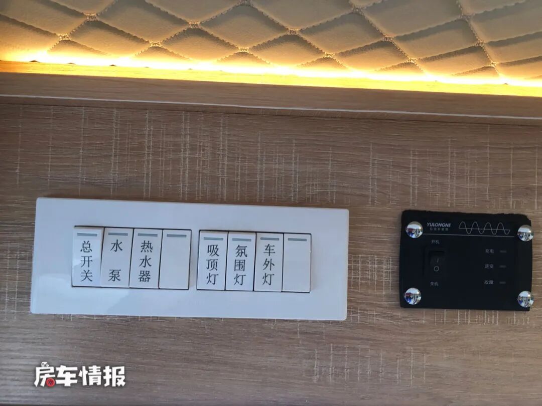 最后看一下水电方面,电路上,这款房车搭载了一台3000W的逆变器,提供了200Ah的铅酸生活电池,水路上则提供了150L的净水箱,并使用电热水器提供热水功能。