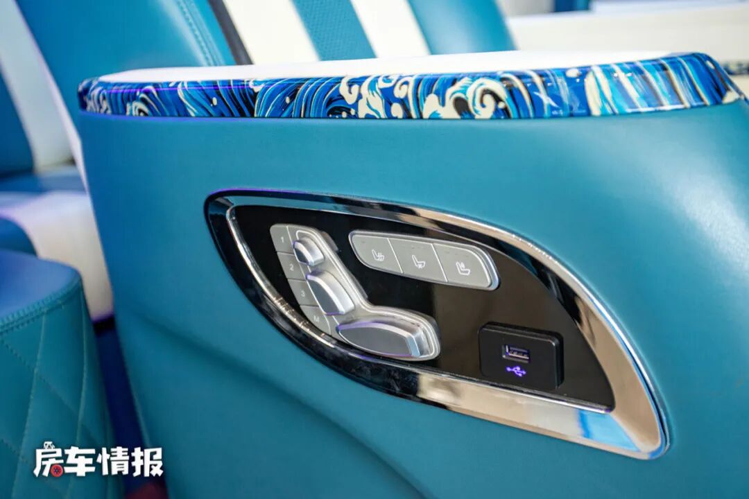临近乘客门处的座椅为航空座椅,侧面带有调节加热按钮以及USB充电接口,方便平时乘车的时候使用,乘坐起来相当的舒服,缓解了乘车途中的疲劳感。