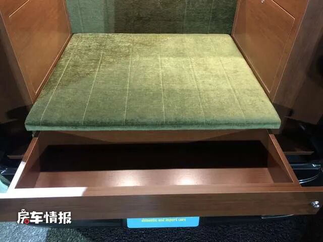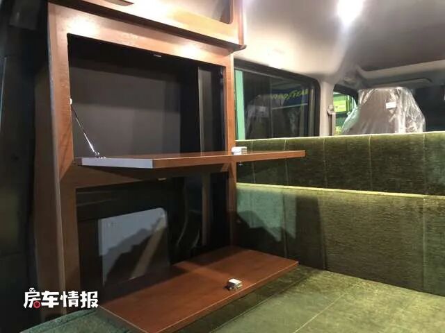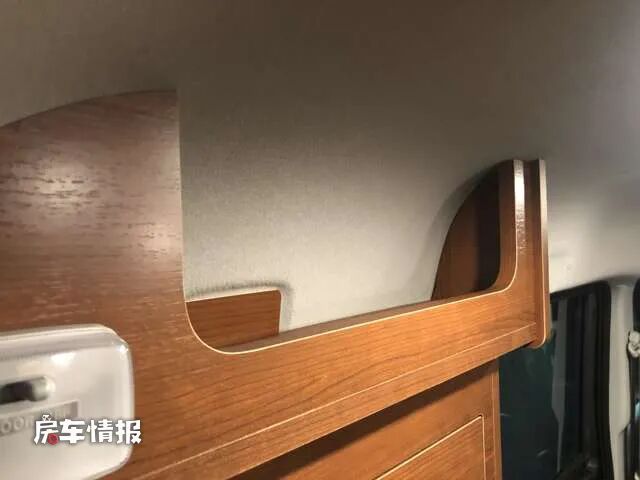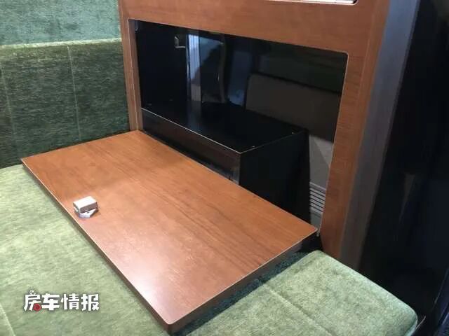 车厢尾部的床垫两侧是两个储物箱体,内部空间不是很大,但是存放一些随手可用的物品还是比较方便的,打开后的翻板可作为小桌板使用,做到了一门两用。