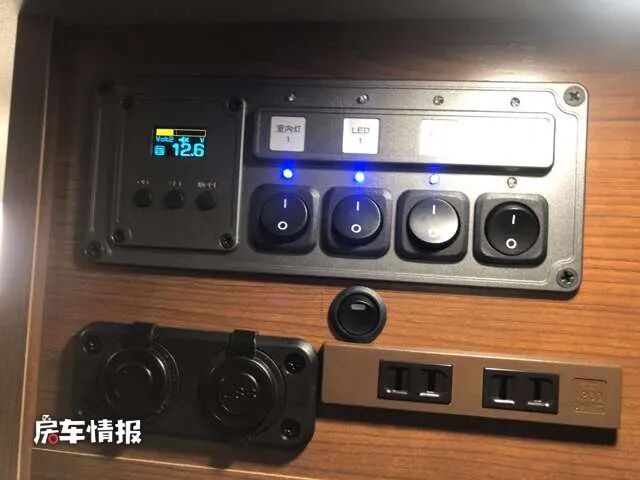 右侧则是全车的电路控制系统,并提供了USB充电接口和外接电源。