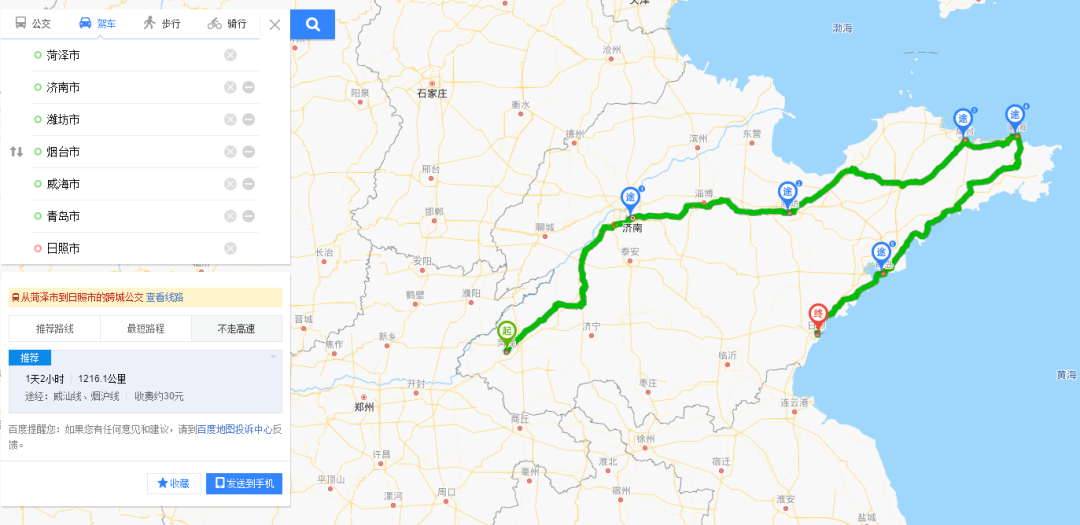 菏泽→济南→ 潍坊→烟台→威海→青岛→日照