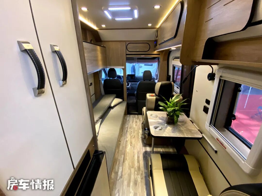 大家都知道,房车内部会客区的布局常见情况下不是以L型沙发设计的就是双排对坐沙发式的设计,但是今天我要给大家介绍的这款B型房车,它的内部整体布局都非常的新颖有创意。