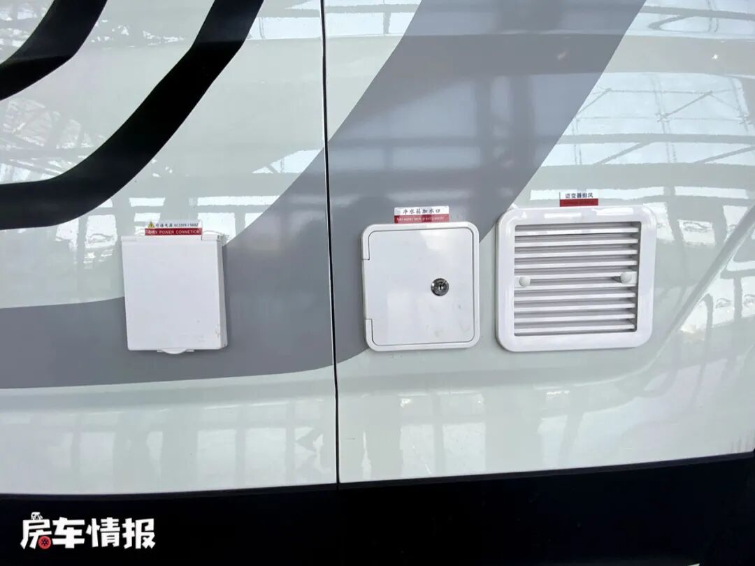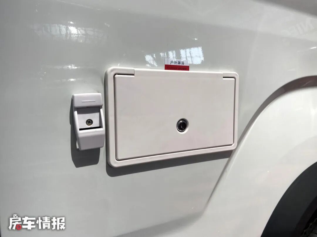 车身外侧同样提供了手动遮阳棚、水电接驳口以及户外淋浴花洒,方便在车外休息聚餐的同时也可以随时随地为房车进行补给。