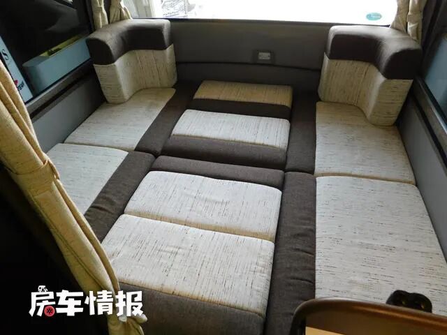 晚上小休息的时候,就可以将两排沙发拓展成一张尺寸为1880mm*1710mm的大号床铺,能够容纳三个成年人睡觉休息使用。